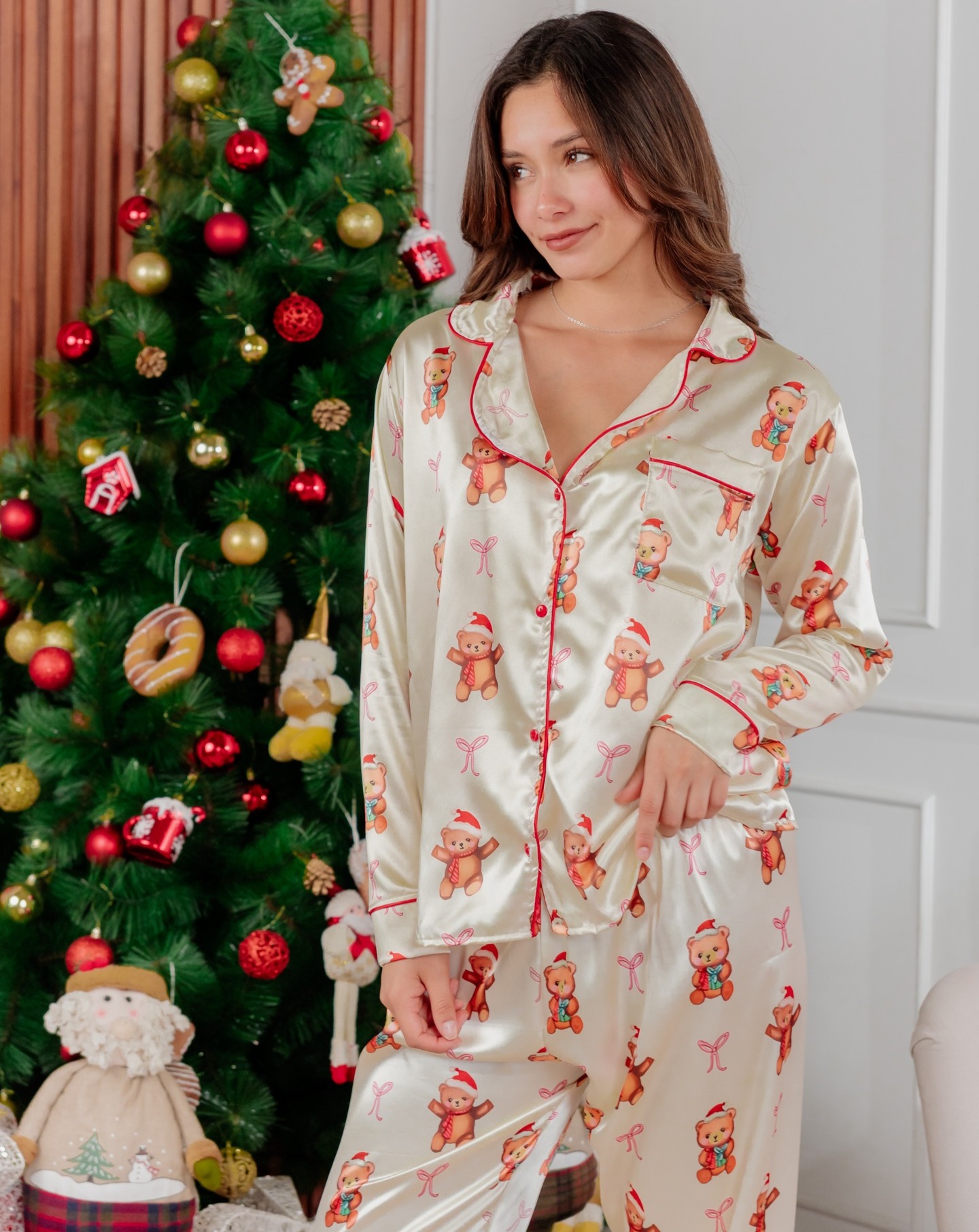 La tela de nuestra pijama de seda estampada es perfecto si te quieres verte de una manera mas elegante sin perder la comodidad ya que la tela también es suave al tacto y fresca, la cual la puedes usar en cualquier ocasión.